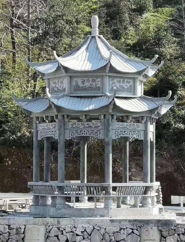 首先,石亭子的平面外形直接決定了亭的造型。平面是正多變形的亭,一般適合攢尖頂?shù)淖龇āF矫媸浅书L方形時適合歇山式的做法;其次,亭造型的意境美重要在于屋頂,石亭子以怎樣的一種形象出現(xiàn)在景區(qū)中,主要靠屋頂決定。
