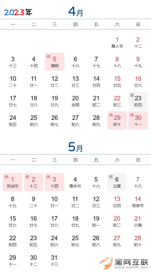 2023年五一勞動節(jié)放假時(shí)間:2023年5月1日(星期一)-2023年5月5日(星期五),共5天,2023年4月30日(周日)、2023年5月6日(周六)正常上班調(diào)休。